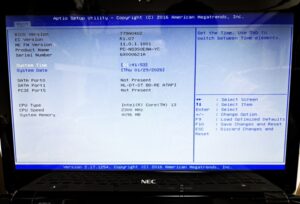 内蔵のSSDを交換したい。正常に起動しなくて、デバイスが見つからないという内容のメッセージが出てくる。