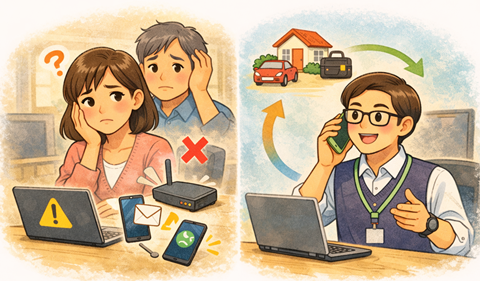 当店は「自分で直すための手順」を長々と案内するページではありません。安全に解決するための進め方を、こちらで整理してご案内します。