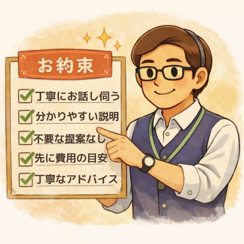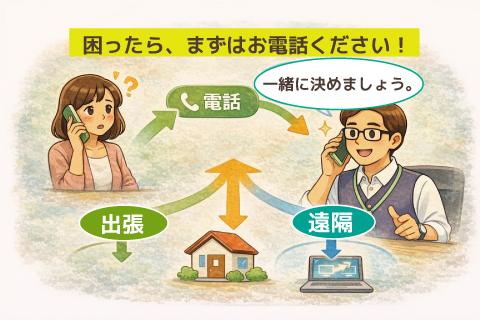 - 作業が必要な場合は、内容と費用の目安を先に共有し、納得いただいてから進めます。