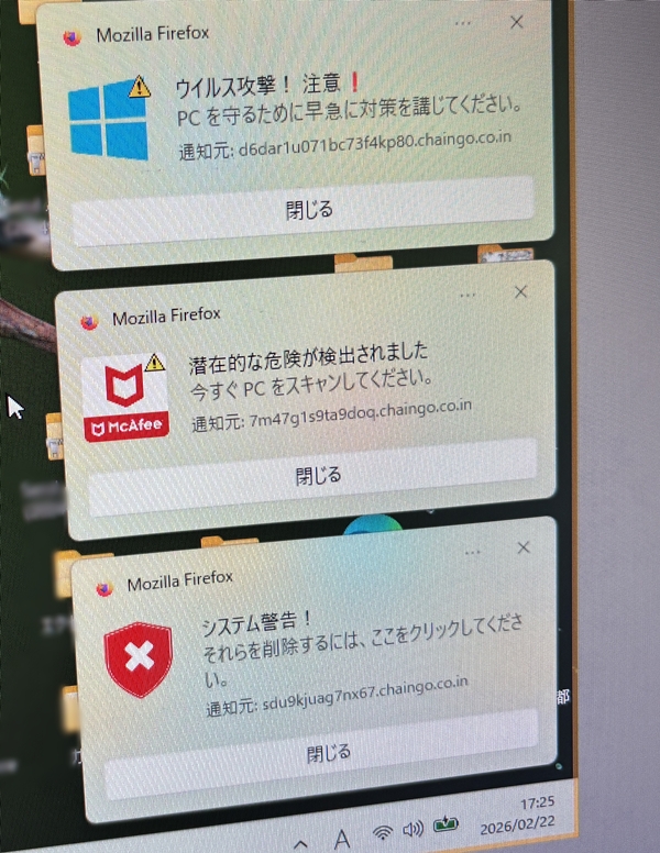 この手のトラブルは、パソコンそのものを壊すことよりも、人の気持ちを焦らせて行動させるのが目的になっていることが多いです。