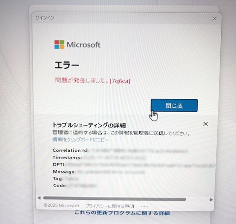 エラーコード 7q6ca は比較的よく出る “一時的に Microsoft 側の認証が拒否されたときに出るエラー” です。