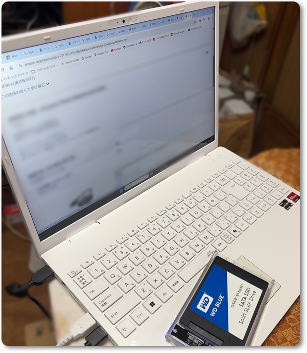 そこで作業を一度中断し、旧デスクトップパソコンから内蔵SSDを物理的に取り外す方法へ切り替えました。