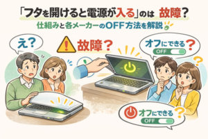 ノートパソコンで「フタを開けると電源が入る」のは故障?仕組み・メーカーの意図・OFF方法まで徹底解説|京都市左京区