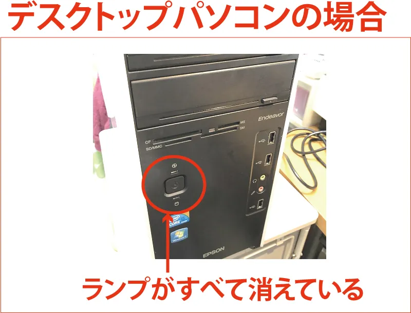 ① 電源ボタンを押すと、パソコン本体のランプが点滅または点灯します。